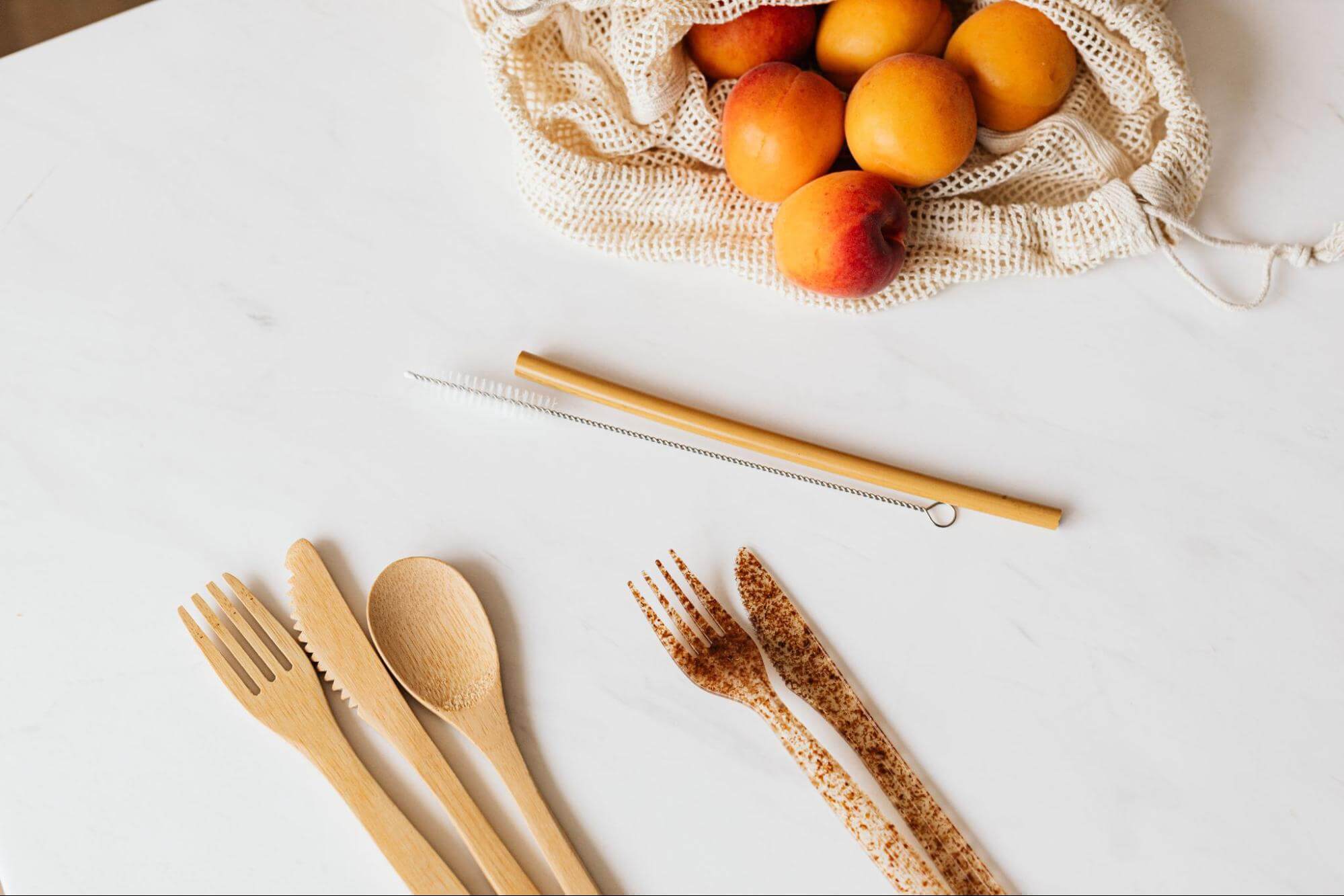 Eating on the go? Don't let plastic cutlery cramp your eco-style. Grab a set of reusable cutlery – think forks, knives, and spoons – made from materials like bamboo or stainless steel.